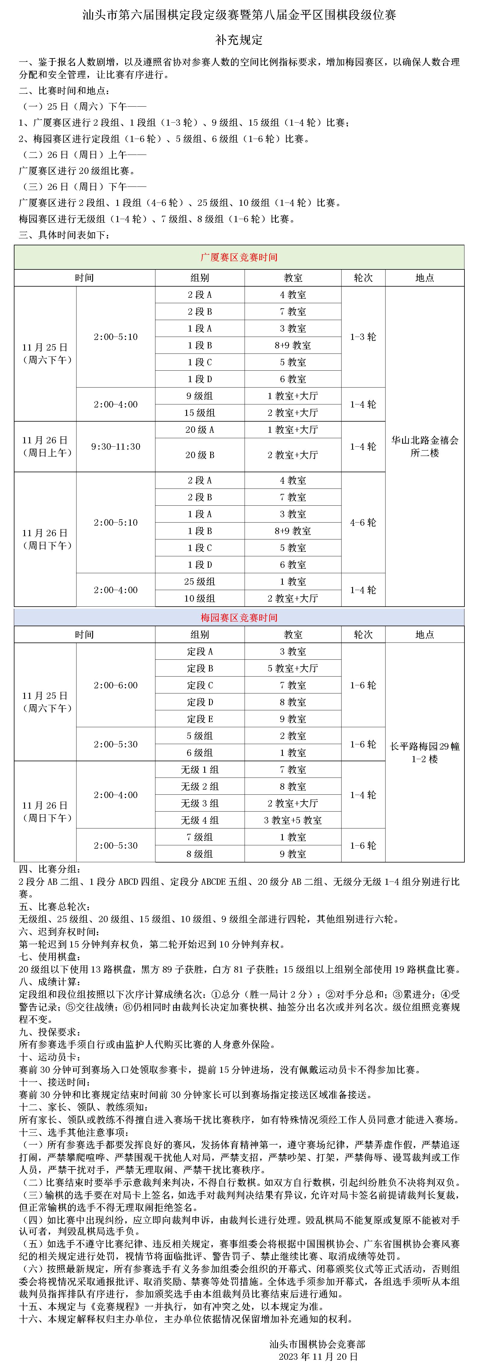 补充规定——汕头市第六届围棋定段定级赛暨第八届金平区围棋段级位赛