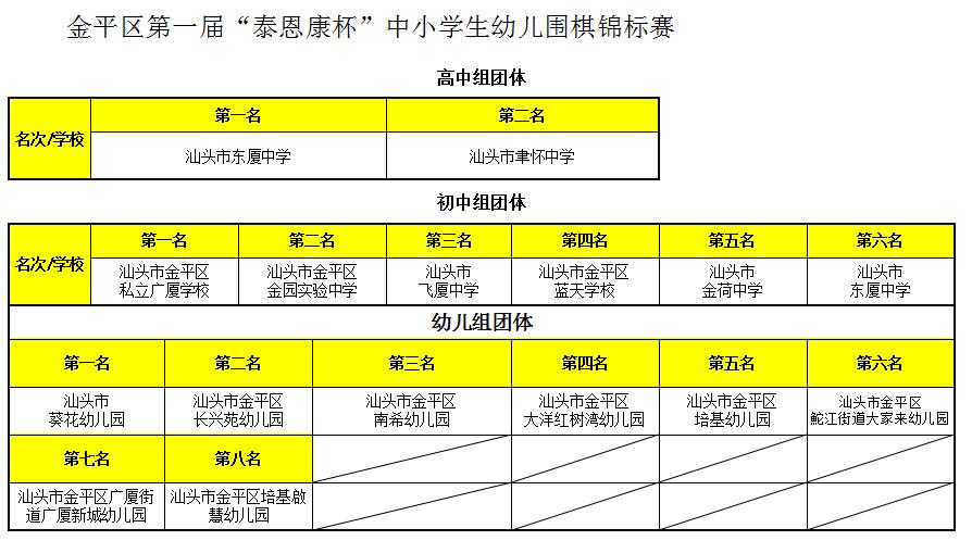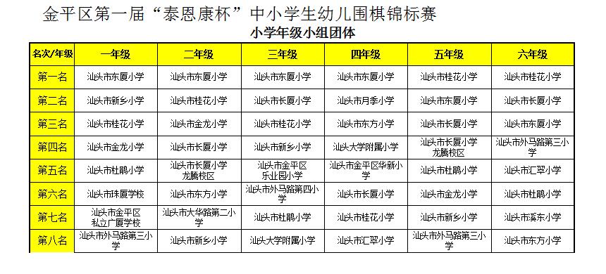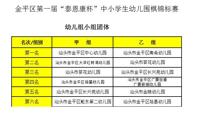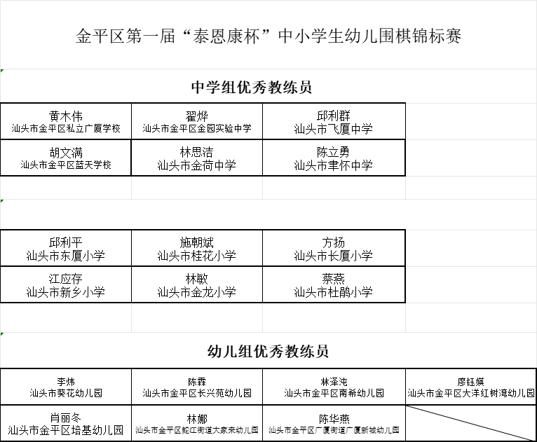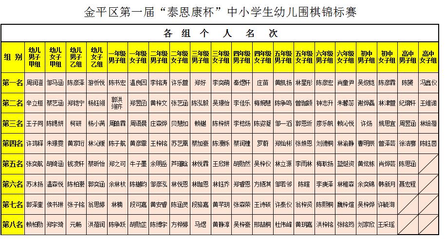 2023金平区第一届“泰恩康杯”中小学生(幼儿)围棋锦标赛获奖团体成绩及各组个人名次表、优秀教练
